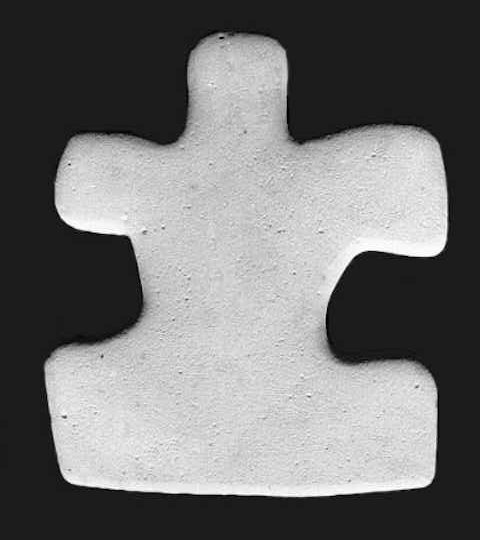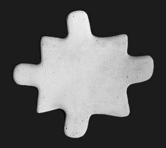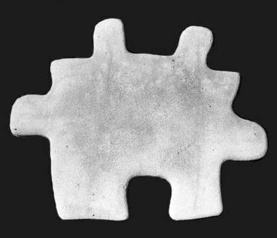 Both the puzzle steps and the leaf steps have three-eights inch rebar in them to prevent the tabs and narrow places from breaking. They are two inches thick. The book Creative Concrete Ornaments for the Garden by Sherri Warner Hunter has instructions for making the puzzle steps. This applies to the leaf steps as well. |